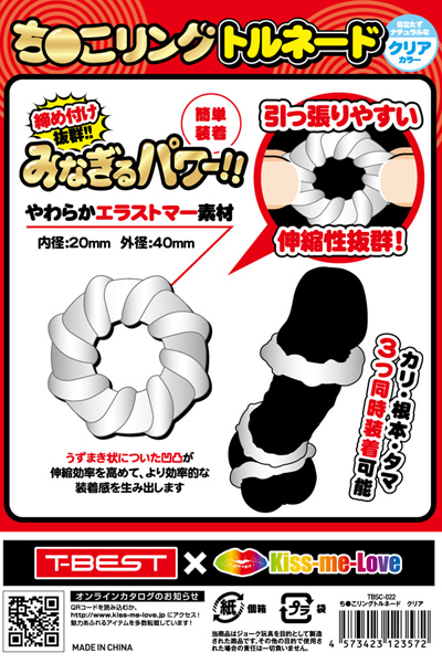 <T-BEST×KISS-ME-LOVE>夜もがんばリングで大人気のやわらかメンズリング「ち●こリング」が、トルネードになって新登場!今度のち●こリングは「特殊形状3個セット」!トルネードデザインのリングを3つもセットにしました!うずまき状に巻き付いた凹凸が伸縮率を高めてより効率的な装着感を生み出します。