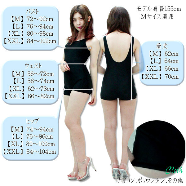 仕様:XXLサイズ:B84〜102cm・W66〜82cm・H84〜104cm 着丈70cm セット内容:水着単品(前身頃全面に裏地付き、胸部にパット付き) 素材:ナイロン、ポリウレタン、その他