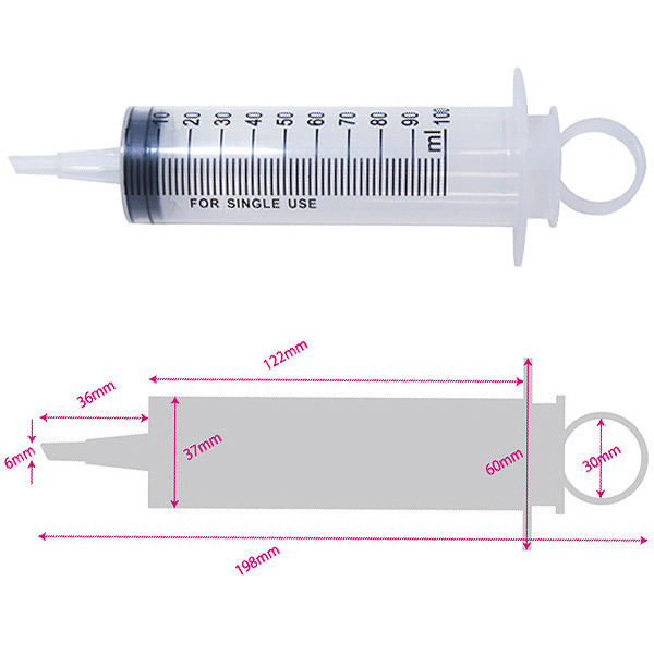 ●医療系グッズのMEDYシリーズ●お手軽なプラスチック製●容量たっぷりの100ml●注入量が一目で分かる目盛り入り●片手でも簡単に注入できるリング付き●小口径の延長キャップも付属。